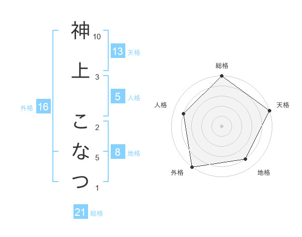 神上 こなつさんの天格は13画の5点!