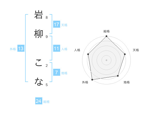 岩柳 こなさんを姓名の画数から五運を鑑定