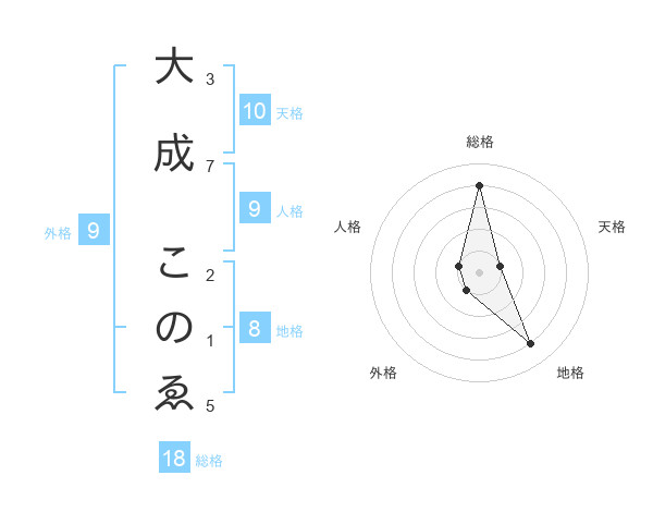 大成 このゑさんの天格は10画の1点!