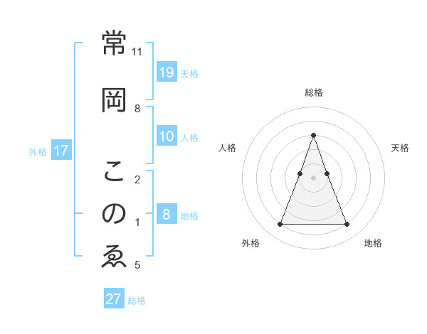 常岡 このゑさんを姓名の画数から五運を鑑定