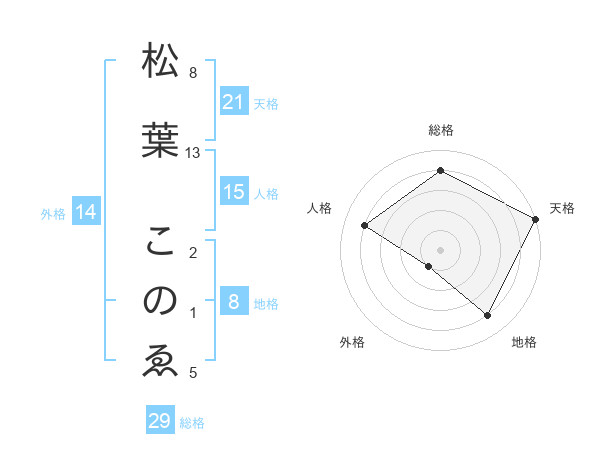 松葉 このゑさんを姓名の画数から五運を鑑定