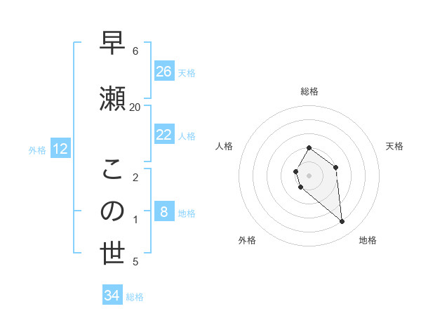 早瀬 この世さんの地格は8画の4点!