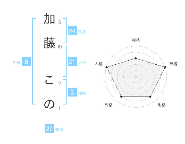 加藤 このさんの天格は24画の5点!