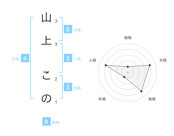 山上 このさんの総格は9画の1点