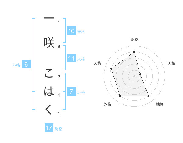 一咲 こはくさんを姓名の画数から五運を鑑定