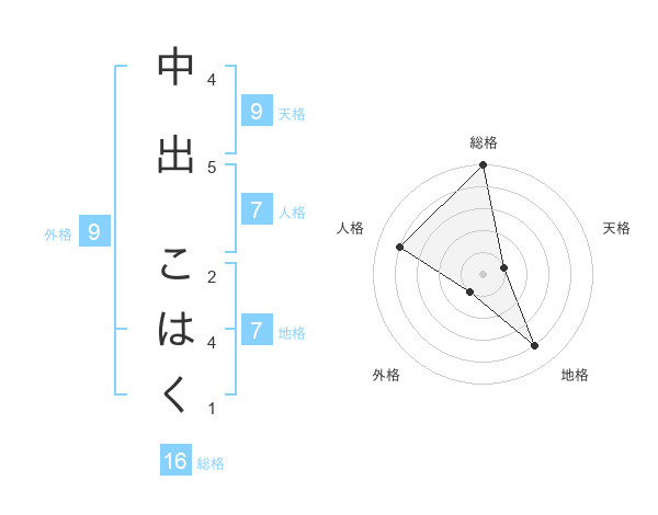 中出 こはくさんの天格は9画の1点!