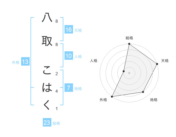 八取 こはくさんの総格は23画の5点!
