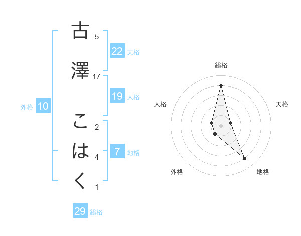 古澤 こはくさんの総格は29画の4点!