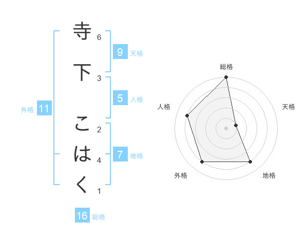 寺下 こはくさんを姓名の画数から五運を鑑定