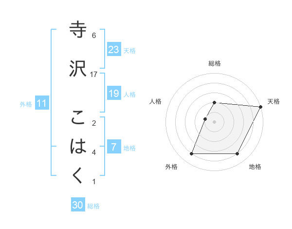 寺沢 こはくさんの天格は23画の5点!