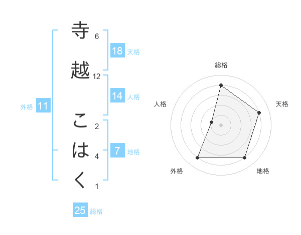 寺越 こはくさんを姓名の画数から五運を鑑定
