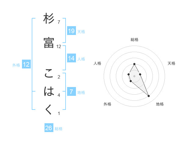 杉富 こはくさんを姓名の画数から五運を鑑定
