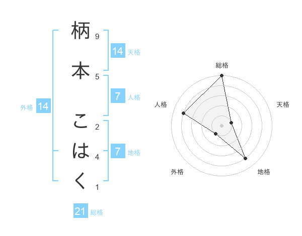 柄本 こはくさんの総格は21画の5点!
