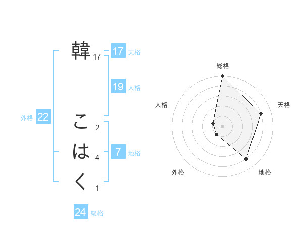 韓 こはくさんの総格は24画の5点!