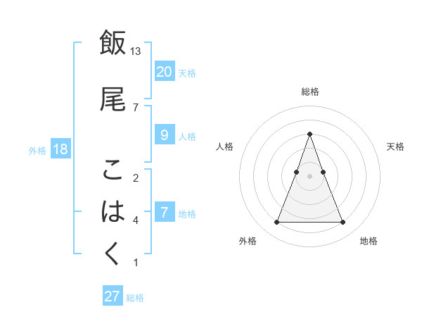 飯尾 こはくさんの総格は27画の3点!