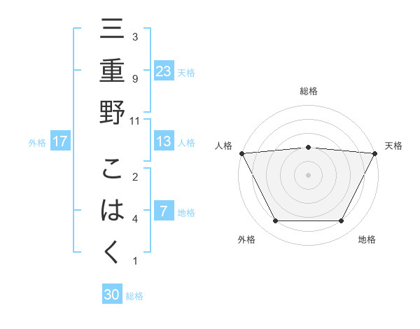 三重野 こはくさんの総格は30画の2点!