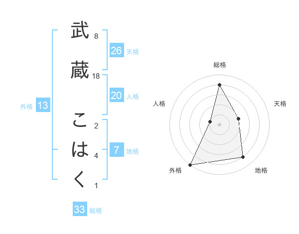 武蔵 こはくさんの総格は33画の4点!