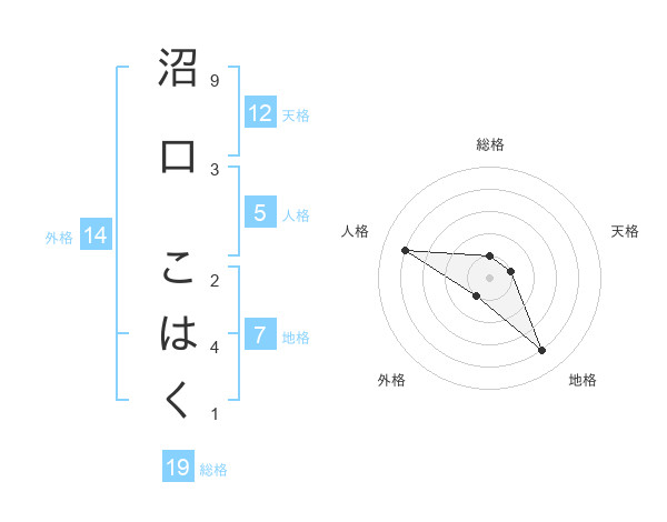 沼口 こはくさんを姓名の画数から五運を鑑定