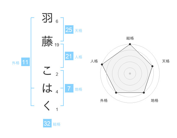 羽藤 こはくさんを姓名の画数から五運を鑑定