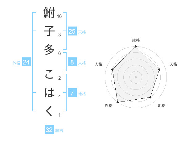 鮒子多 こはくさんを姓名の画数から五運を鑑定