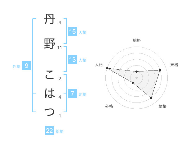 丹野 こはつさんを姓名の画数から五運を鑑定