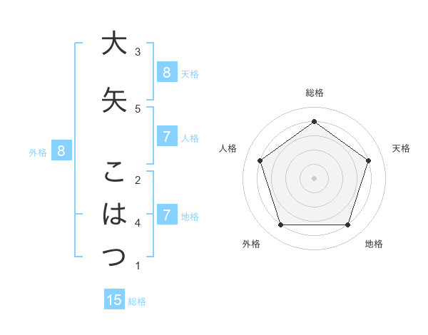 大矢 こはつさんの総格は15画の4点!