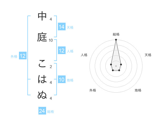 中庭 こはぬさんの総格は24画の5点!