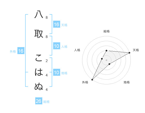 八取 こはぬさんの天格は16画の5点!