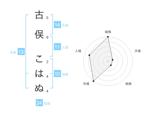 古俣 こはぬさんの外格は13画の5点!