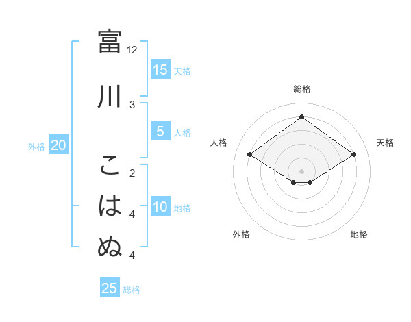 富川 こはぬさんの天格は15画の4点!