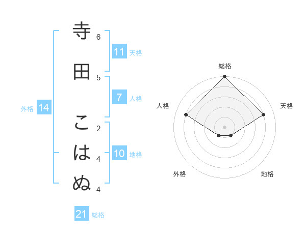 寺田 こはぬさんを姓名の画数から五運を鑑定