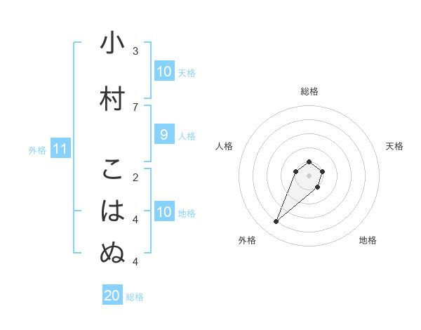 小村 こはぬさんを姓名の画数から五運を鑑定