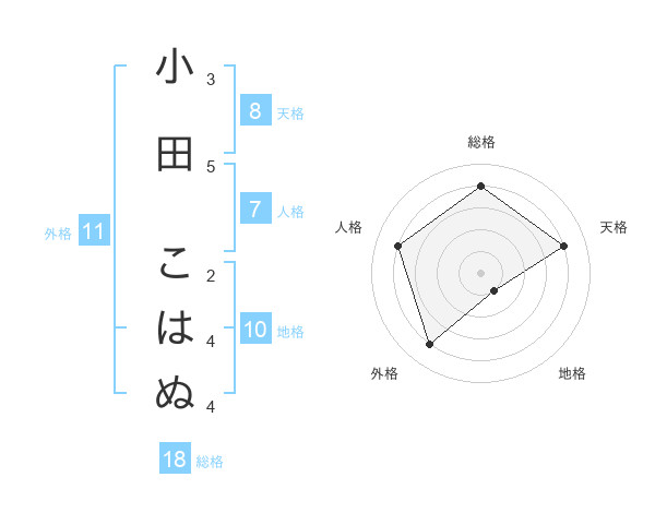 小田 こはぬさんの総格は18画の4点!