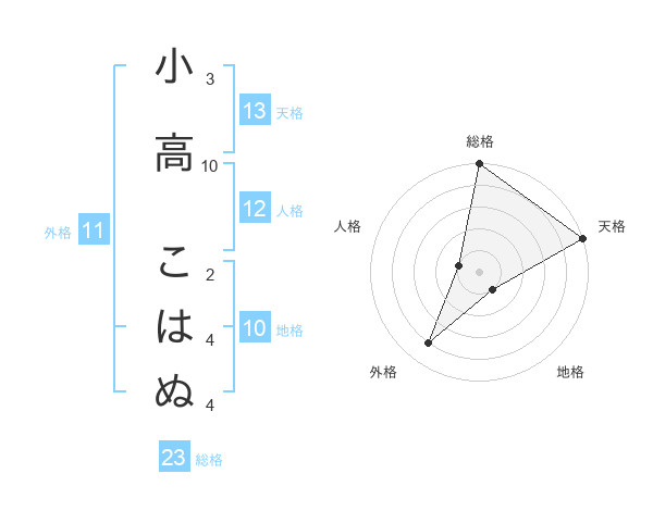 小高 こはぬさんの天格は13画の5点!