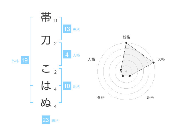帯刀 こはぬさんを姓名の画数から五運を鑑定
