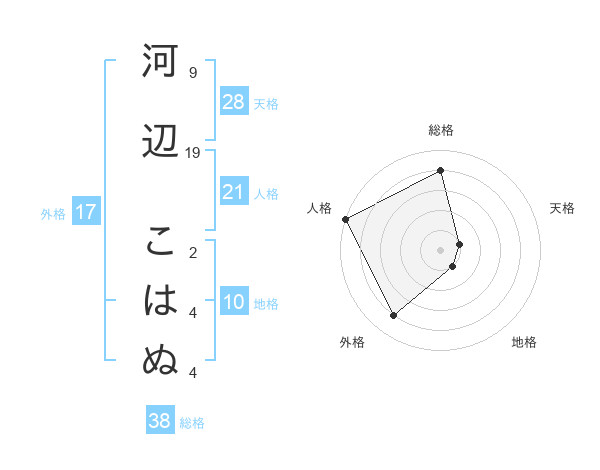 河辺 こはぬさんの総格は38画の4点!