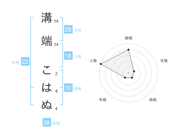 溝端 こはぬさんの総格は38画の4点!