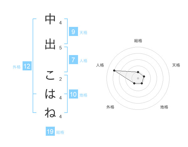 中出 こはねさんの総格は19画の1点!