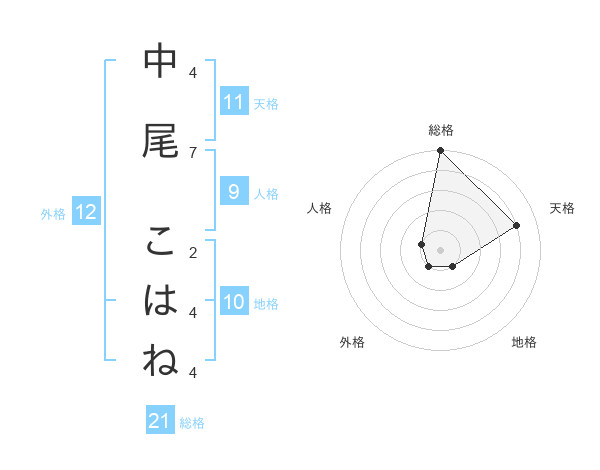 中尾 こはねさんを姓名の画数から五運を鑑定
