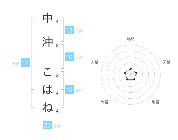 中沖 こはねさんの総格は22画の1点!
