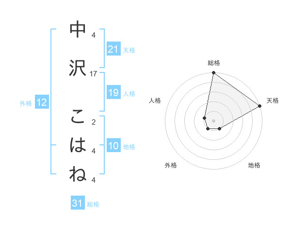 中沢 こはねさんの天格は21画の5点!