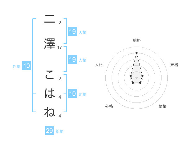 二澤 こはねさんを姓名の画数から五運を鑑定
