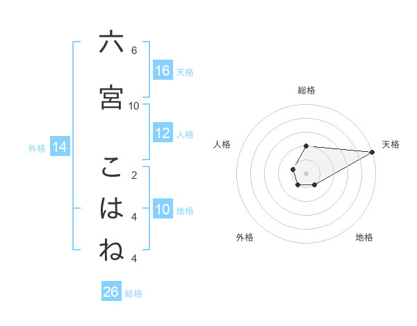 六宮 こはねさんを姓名の画数から五運を鑑定