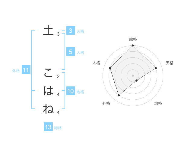 土 こはねさんの総格は13画の5点!