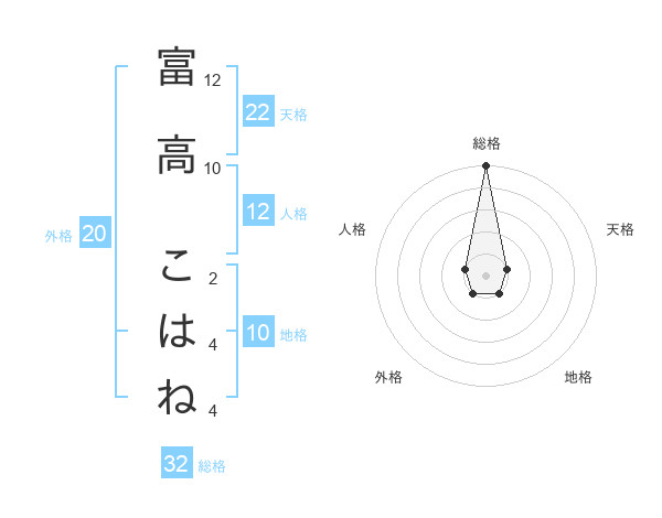 富高 こはねさんの総格は32画の5点!