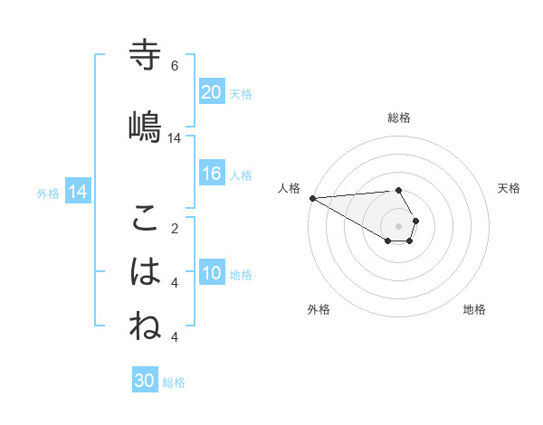 寺嶋 こはねさんを姓名の画数から五運を鑑定