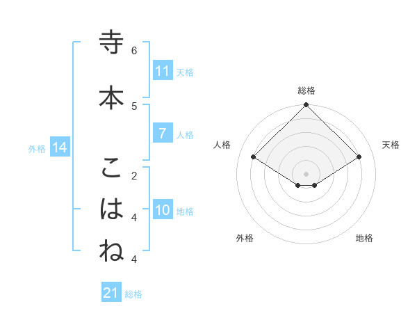 寺本 こはねさんを姓名の画数から五運を鑑定