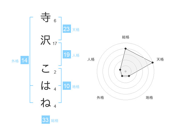 寺沢 こはねさんを姓名の画数から五運を鑑定