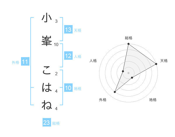 小峯 こはねさんの天格は13画の5点!