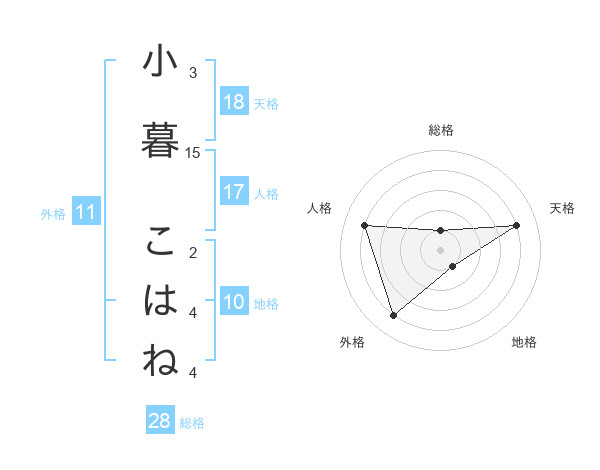 小暮 こはねさんの天格は18画の4点!